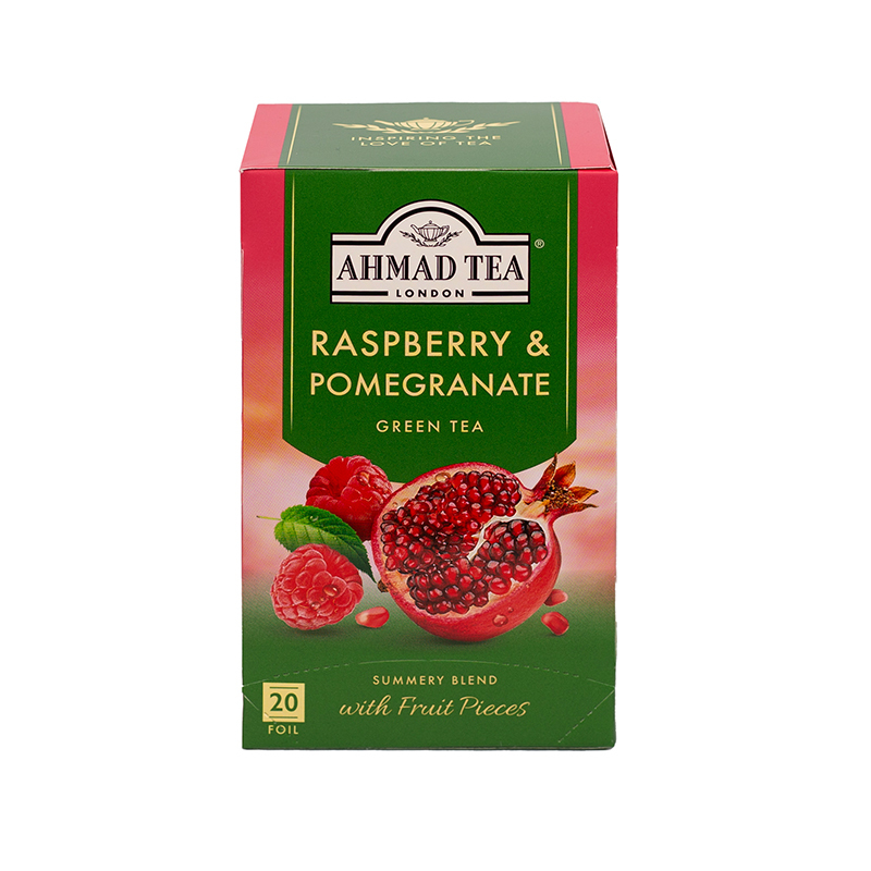 Feiner Grüner Tee verfeinert mit dem köstlichen Aroma von Himbeeren und Granatapfel.